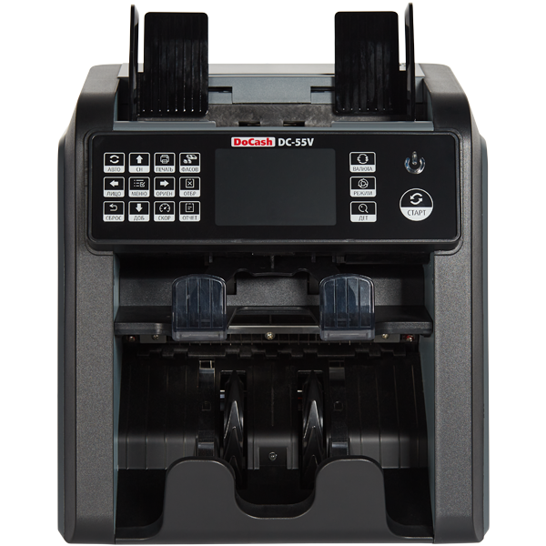 - DoCash DC-55V экономит важнейший ресурс — время оператора. Благодаря двум карманам он позволяет за один прогон пересчитать банкноты и проверить их на подлинность. Счетчики могут использоваться в операционных кассах и кассах пересчета банков для приема смешанных депозитов, а также в автосалонах, вендинговых компаниях, гипер- и супермаркетах.
