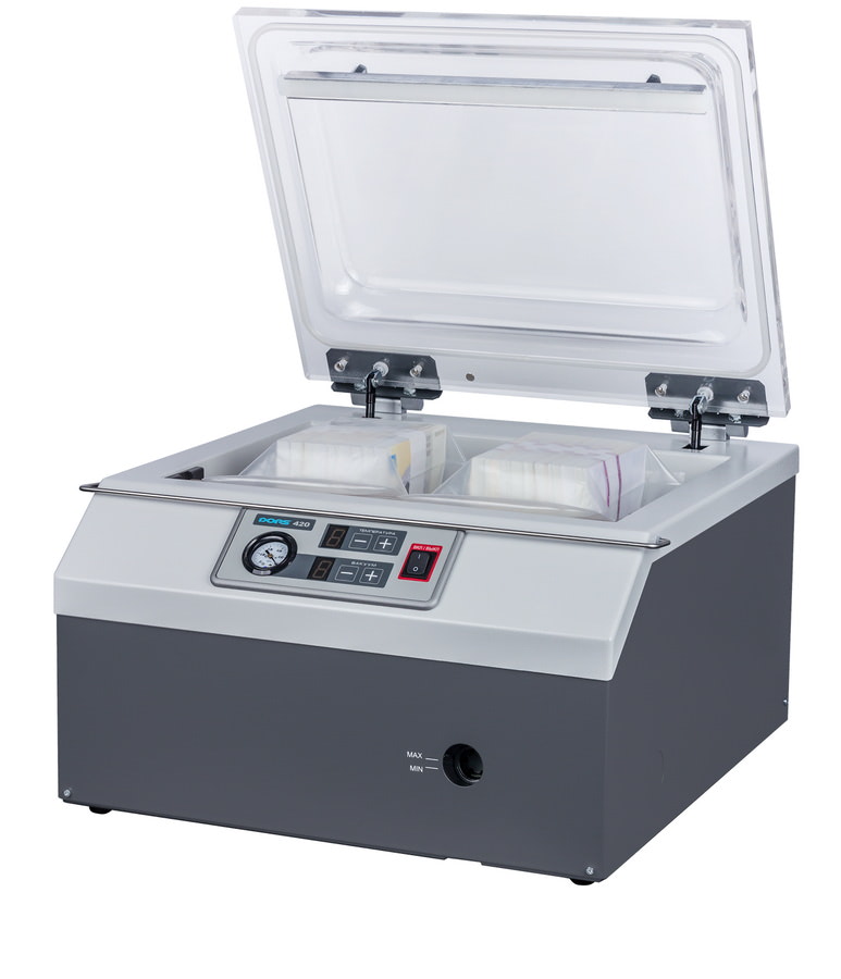 Для достижения требуемой жесткости упаковки предусмотрена регулировка степени вакуума. При необходимости можно настраивать мощность нагревательного элемента и управлять качеством запайки шва. Устройство запоминает настройки даже при смене типа пакета. Прибор позволяет использовать силиконовое или фторопластовое клише для создания оттиска с информацией на шве. При закрытии крышки упаковщик автоматически запускает рабочий процесс. В памяти устройства можно сохранить до 9 пользовательских параметров уровня вакуума и нагрева.