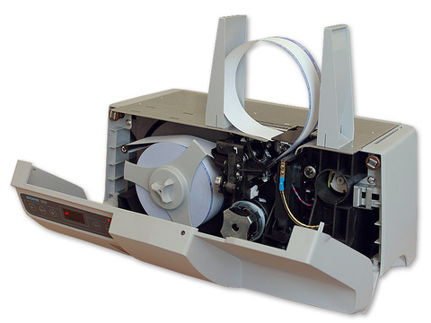 Представляем вашему вниманию устройство без вакуумной упаковки от компании Dors - упаковщик банкнот Dors 500. Аппарат рассчитан на упаковку подготовленных пачек банкнот (так называемый корешок - 100 купюр), различной документации или каких-либо ценных бумаг в автоматическом режиме. Для этого используется особая лента, обладающая клейкими свойствами при нагревании. Наверняка многие из вас видели пачки банкнот, упакованные в такие ленты на бумажной основе. Предназначен для автоматического обандероливания корешков банкнот.- Автоматическое формирование ленточной петли