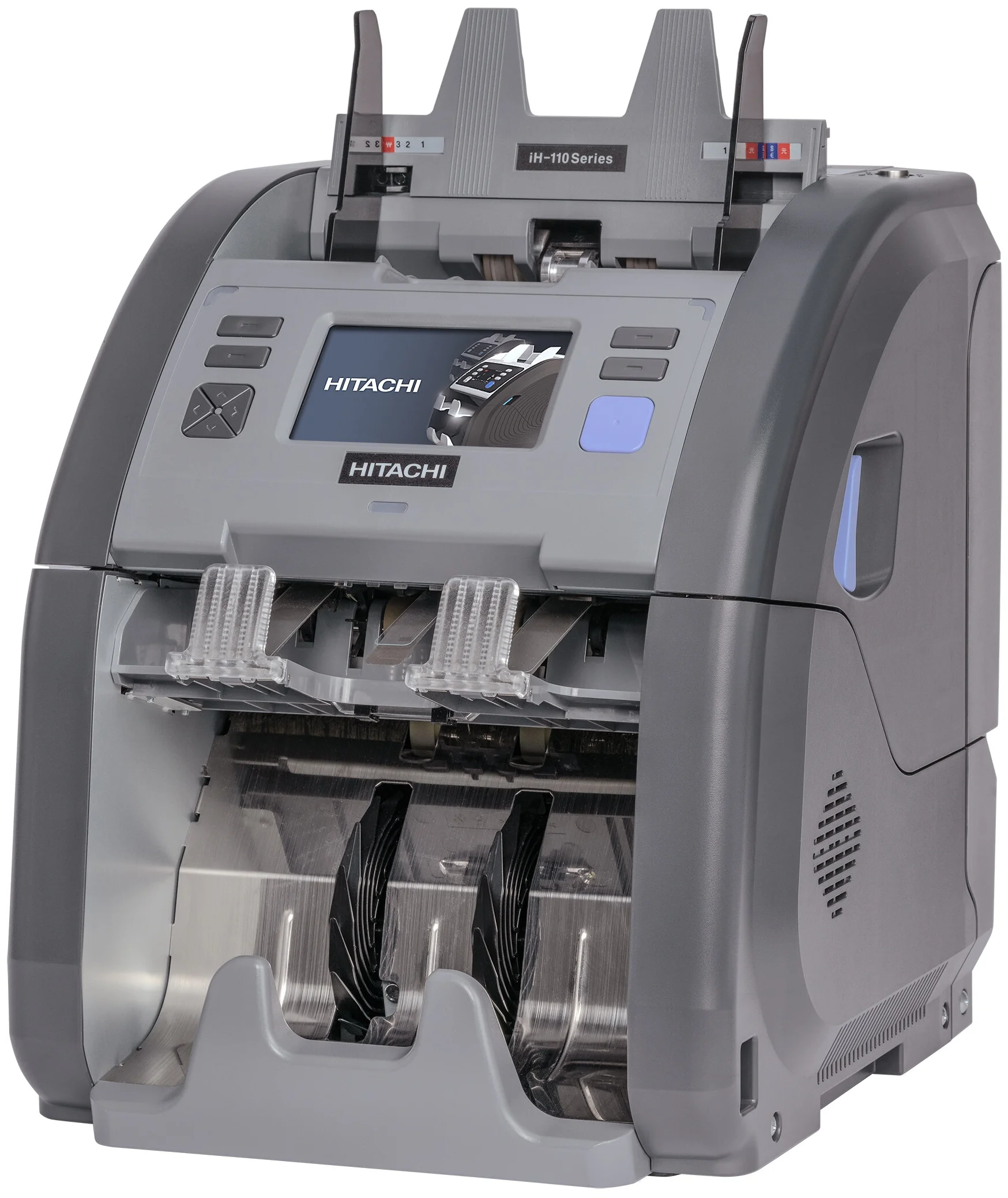 HITACHI iH-110 — сделан на базе модели банковского класса iH-110F и обладает многими преимущества таких машин: надежность, качественный блок детекции, гибкость в настройках, работа с серийными номерами банкнот и даже работа со специальным ПО для сохранения пересчетов и мониторинга по сети