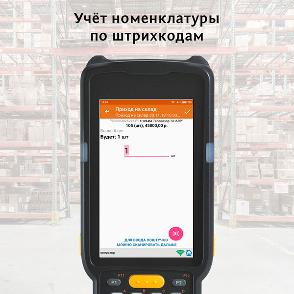 Программное обеспечение для мобильных устройств со встроенным сканером штрих-кодов (ТСД). Позволяет быстро автоматизировать, оптимизировать рабочие места и бизнес процессы по учету товара на складе. Например, приемку товара по штрих-кодам или инвентаризацию.