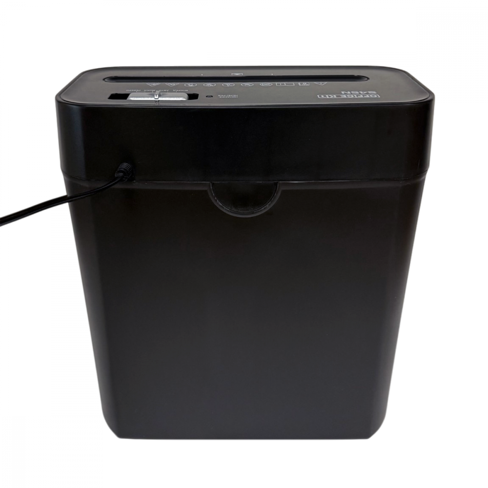 Оснащён системой защиты от замятий с механическим реверсом и термозащитой двигателя. Компактный и надёжный шредер подходит для уничтожения документов, пластиковых карт и бумаг со скрепками.