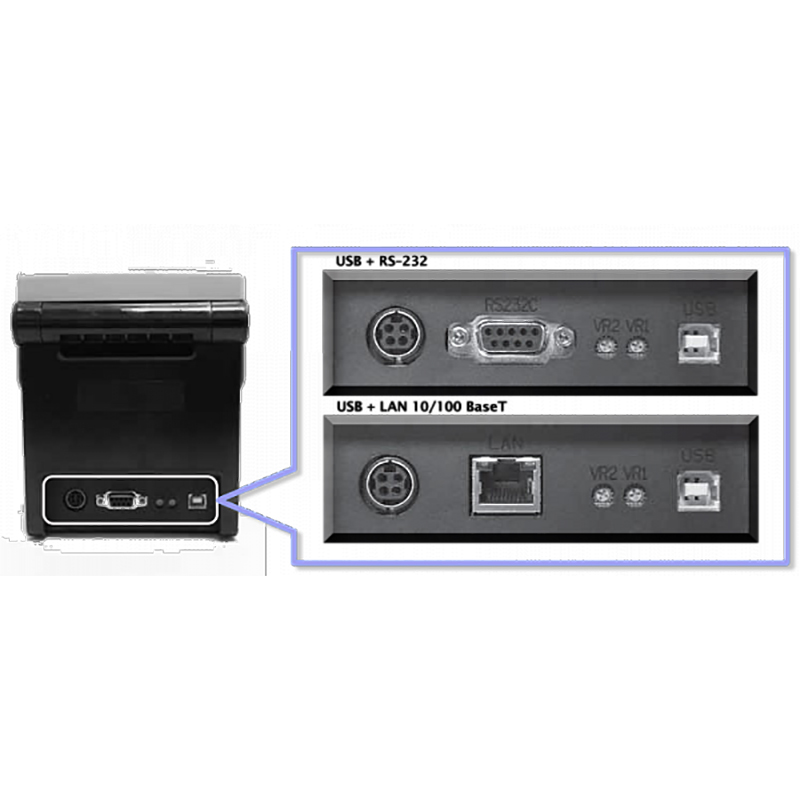 Принтер может поставляться с встроенными интерфейсами 2-х типов:
