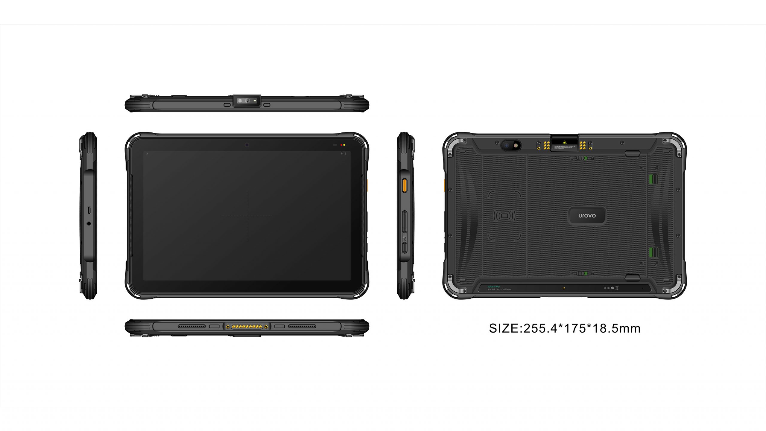 UROVO P8100 защищенный планшет / P8100P-SZ2S10E40000 / Бесшовный роуминг (seamless roaming WiFi) / 2.2GHz / Android 10 / 4 GB / 64 GB / 13Мп / 5Мп / WiFi / 4G / 3G / GSM / GPRS / GPS / 10" / 1920x1200 / Емкостной / 2D / Zebra SE4710 (Soft Decode) / Опционально / NFC / IP67