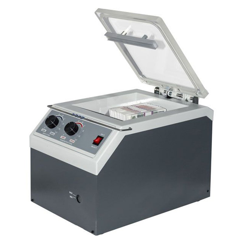 Рабочий процесс начинается автоматически при закрытии верхней крышки. Образующиеся излишки пластиковой пленки автоматически обрезаются. Предусмотрена возможность регулировки уровня вакуума – это опция позволяет задавать твердость получаемых упакованных пачек.