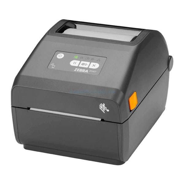 Термопринтер Zebra ZD421d, разрешение печати - 203 dpi, 300 dpi, скорость печати - 152 мм в секунду, 102 мм в секунду, способ печати - термопечать, ширина печати - 104 мм, 108 мм, интерфейс подключения: Bluetooth, USB, Wi-Fi, Ethernet.